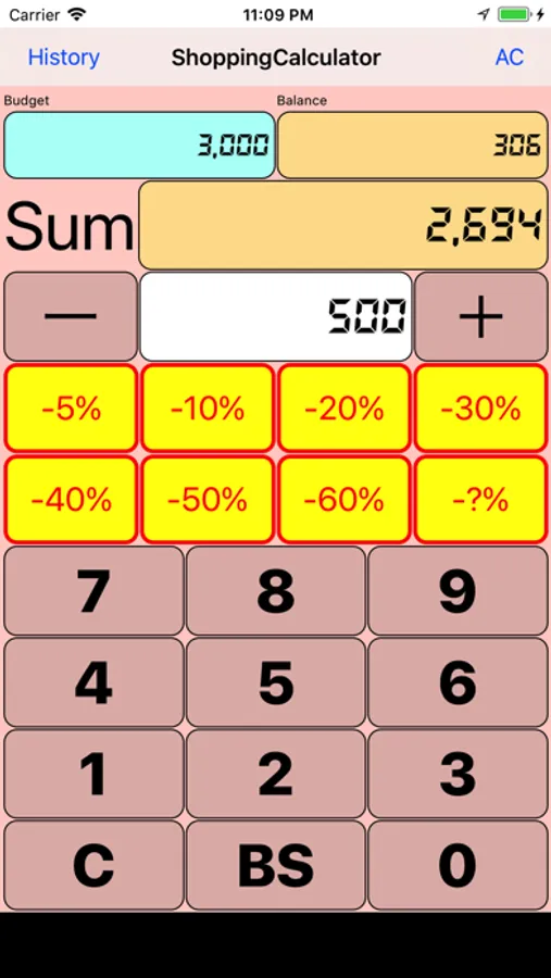 You can calculate immediately with fixed value buttons such as 5%, 10%, 20%, 30%, 40%, 50% 60%.