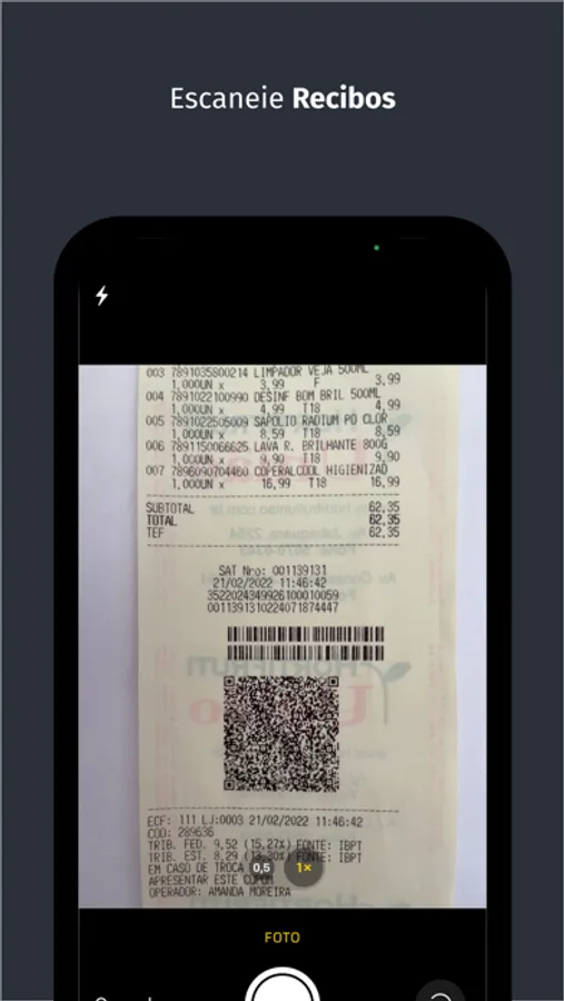 - Notas fiscais e comprovantes digitalizadas pelo celular