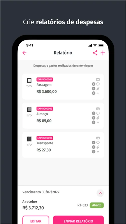 - Aprovação de relatórios de despesa