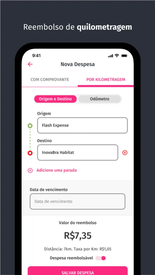 - Reembolso por quilometragem