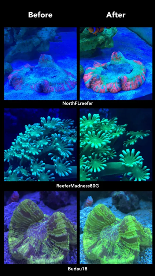 I created the Aquarium Camera app because I was tired of seeing posts of brilliant aquariums on forums like Reef2Reef, Nano-Reef, ReefCentral that don't truly represent the health and beauty of the fish, plants, and corals inside. It wasn't as big of a problem in the days of VHO, Power Compacts and Metal Halide lighting, but with LEDs now taking over the aquarium lighting space, we needed another solution.