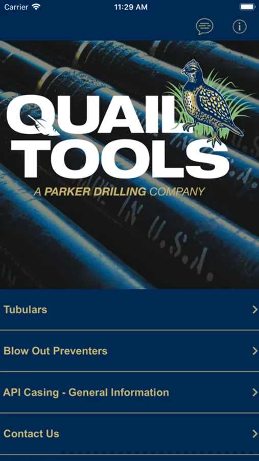 The app allows users to select Tubulars or BOPS to view specs. Users will also have access to our newly added API Casing General Information table.