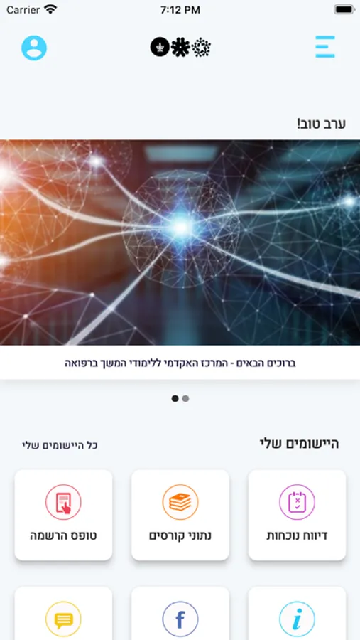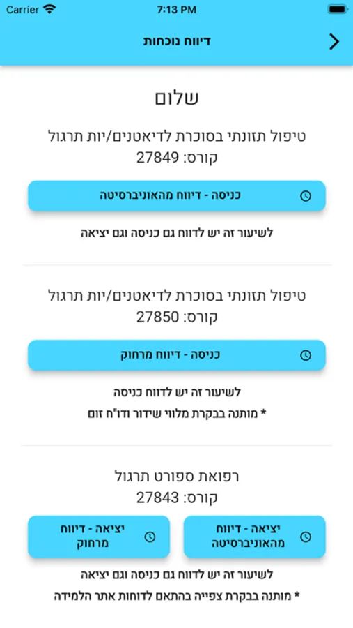 באם לא יעשה שימוש באפליקציה זו, הנך מתבקש להסדיר נוכחות במזכירות לימוד המשך מדי מפגש.