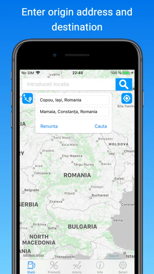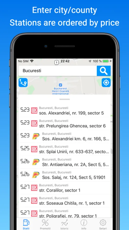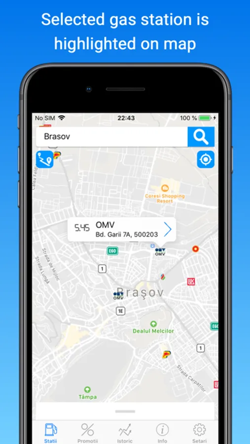 Locate all Petrom, OMV, Lukoil, Mol, Rompetrol, Socar, Gazprom petrol stations and get driving directions to the selected one.