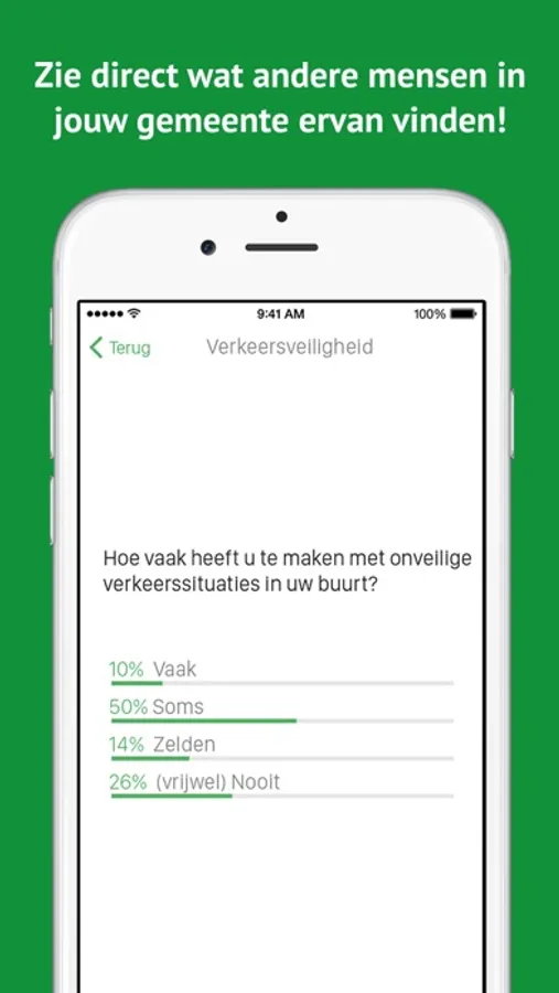Nadat je een peiling hebt ingevuld zie je op een eenvoudige manier wat andere mensen uit jouw omgeving vonden van dit onderwerp.