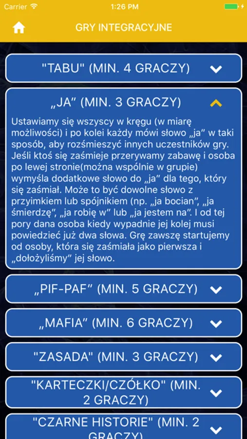 Aplikacja powstała z myślą o jeszcze większej integracji naszych uczestników, ale także, aby uczestnicy na długo nie zapomnieli swoich wyjazdów. Swoich, bo w aplikacji możesz dodawać kolejne wyjazdy, a na każdym z nich znajdziesz gry animacyjne na zabicie czasu, opis kadry, która dbała o Twoje bezpieczeństwo, lokalizacje najważniejszych punktów wycieczki (oraz lokalizacje kadry) i wiele innych przydatnych rzeczy podczas wyjazdu jak i pamiątkowych po wyjeździe