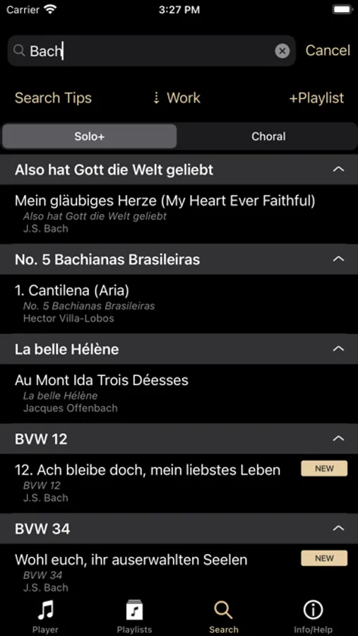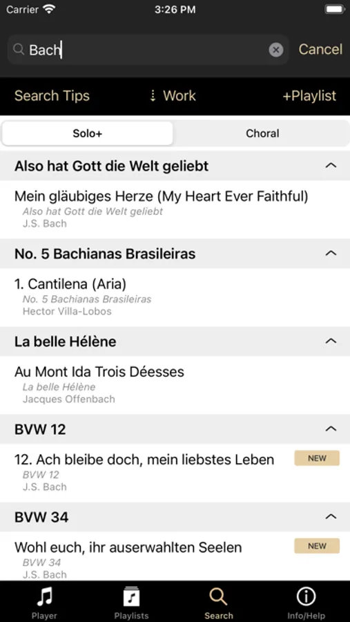 The fast growing Appcompanist library includes thousands of arias, art songs, musical theater solos, jazz standards, spirituals, choral works and more. Hundreds of accompaniments are added each month by user request.