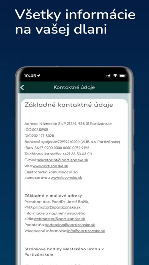 Informačná mobilná aplikácia pre obyvateľov a návštevníkov mesta Partizánske. Partizánske (predtým Baťovany) je okresné mesto ležiace na juhu Trenčianskeho kraja. Do roku 1960 bolo sídlom okresu. Medzi rokmi 1960 – 1995 okres Topoľčany a od 1997 znova sídlo rovnomenného okresu.