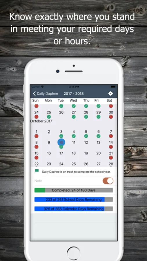 - Daily Attendance: You can track attendance on a daily basis. Set a target goal for the school year and Homeschool Attendance will tell you whether you're on track to reach it.