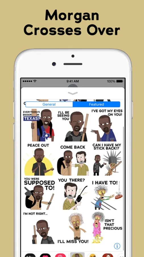 Reanimate your iMessage conversations with AMC’s official sticker pack for The Walking Dead. Inside you’ll find iconic characters from the TV series like Rick, Daryl, Michonne, Morgan, Carol and Negan along with unique walkers and undead flesh-eating expressions.