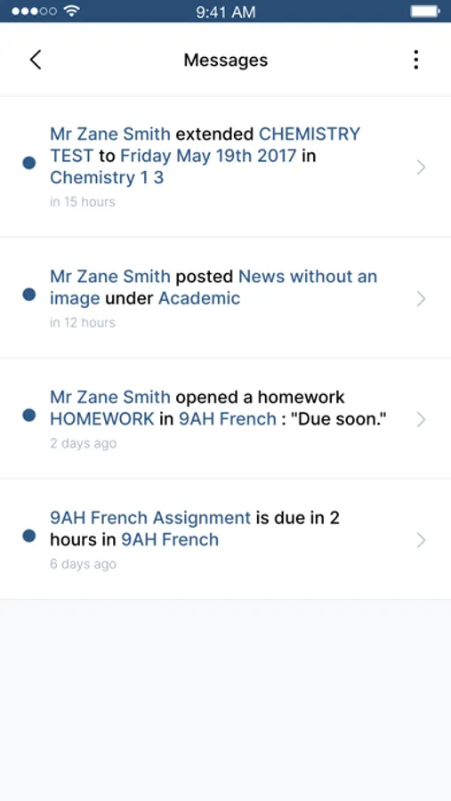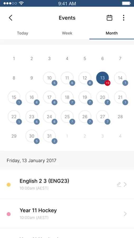 Calendar: the Calendar provides parents, teachers and students a personalised view of what's coming up for the day or in the future. Students can also receive reminders when the due date for their work is approaching