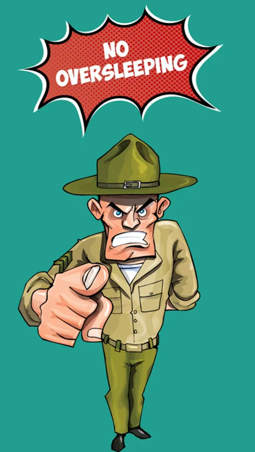 No more jangling, jarring alarm clocks! No more jumping three inches off the bed when your alarm goes off! Now you'll wake up with a smile on your face as our no-nonsense Drill Instructor rousts you out of bed. But listen, guys, watch out for this Drill Instructor – he means business –
