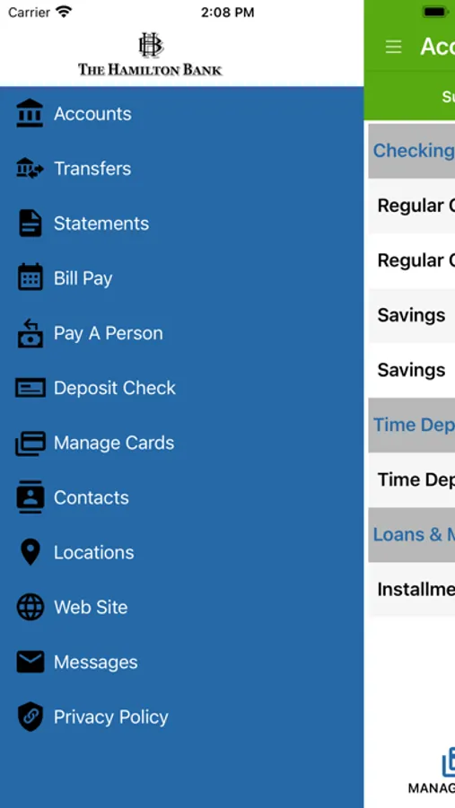 With The Hamilton Bank mobile app you will have the ability to check balances, schedule transfers and view statements 24 hours a day / seven days a week.