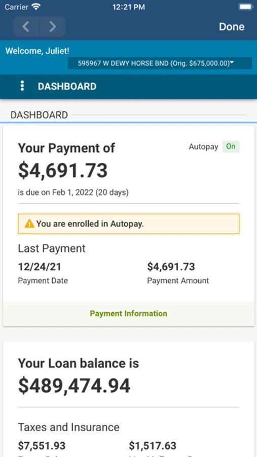 • View eStatements and check the escrow balance set aside for taxes and/or homeowner's insurance