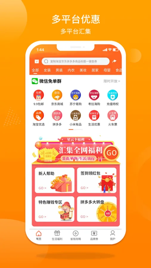 新人下载体验可享0元购!国家备案,公司运营,搜集者已获得国家认可R商标是一款淘宝京东拼多多购物领优惠券省钱又赚钱的APP,同时又提供全球吃喝玩乐购包含星巴克肯德基麦当劳必胜客等百余个大牌6折福利,目前已过百万人下载!