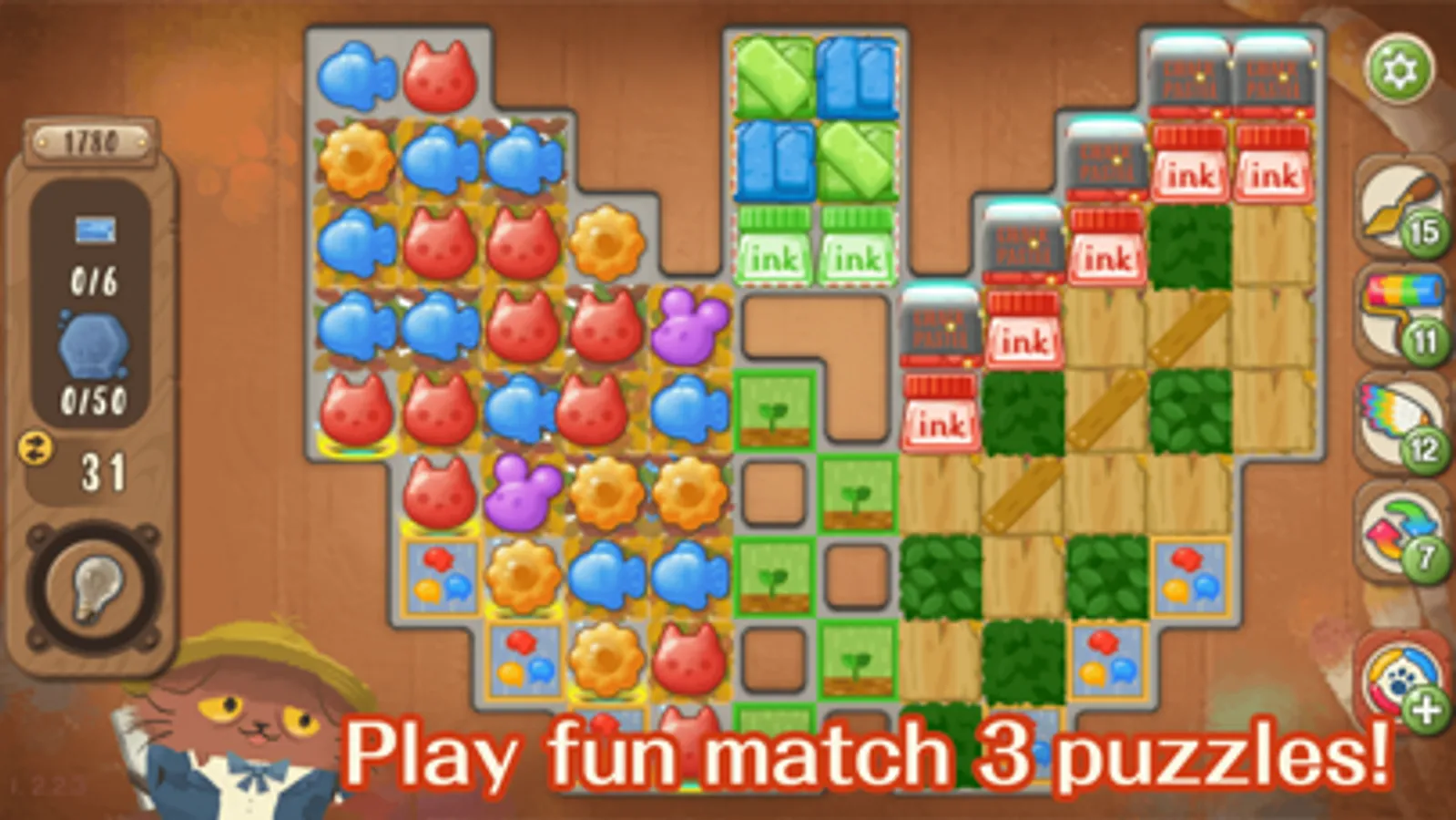Welcome to Cats Atelier, a charming tale of art, romance, and adventure. Enjoy satisfying match-three puzzles alongside an adorable cast of feline friends.