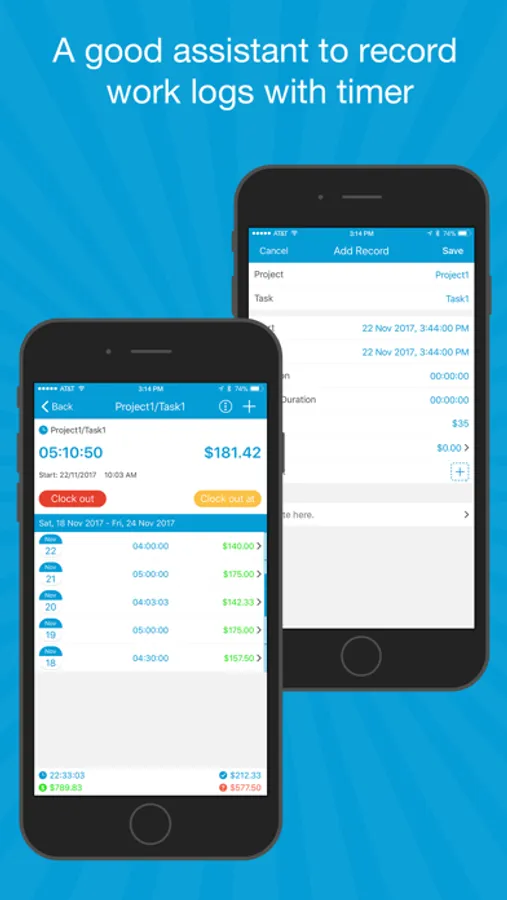 Just tap to start timing, Salary Calculator will record your working time and wages. It will keep the records for you to review, share and even make invoices to clients.