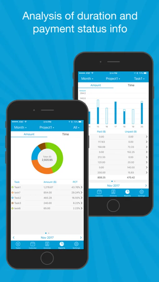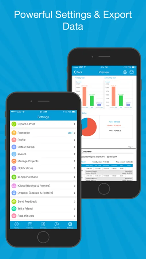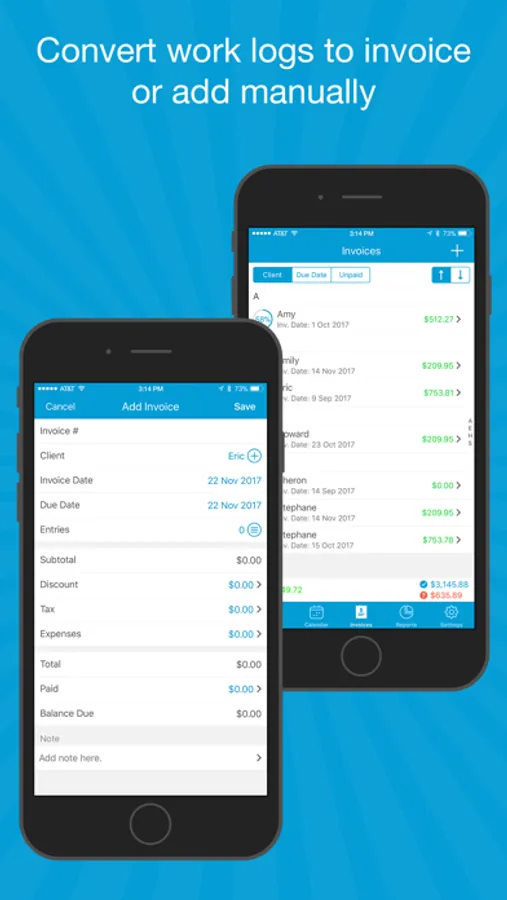 You can view the logs by list or calendar, export the logs or print them directly in app, and also mark the logs with paid status.