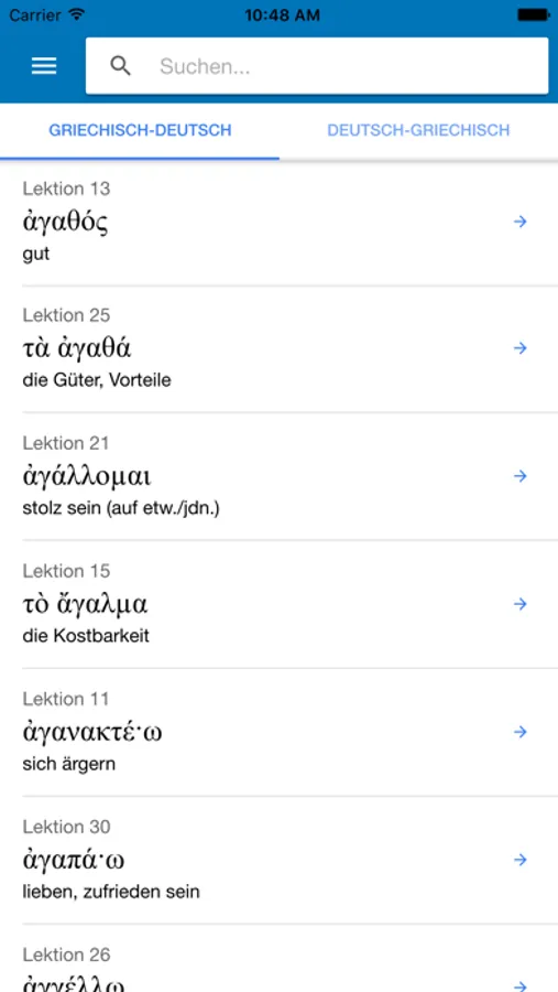 Diese Vokabeltrainer-App dient zur Ergänzung des Lehrwerks und bietet neben einer Trainingsfunktion auch die Möglichkeit zu Vokabeltests und zur gezielten Vokabelsuche. Die Suchfunktion kann gleichzeitig auch als digitales Wörterbuch verwendet werden.