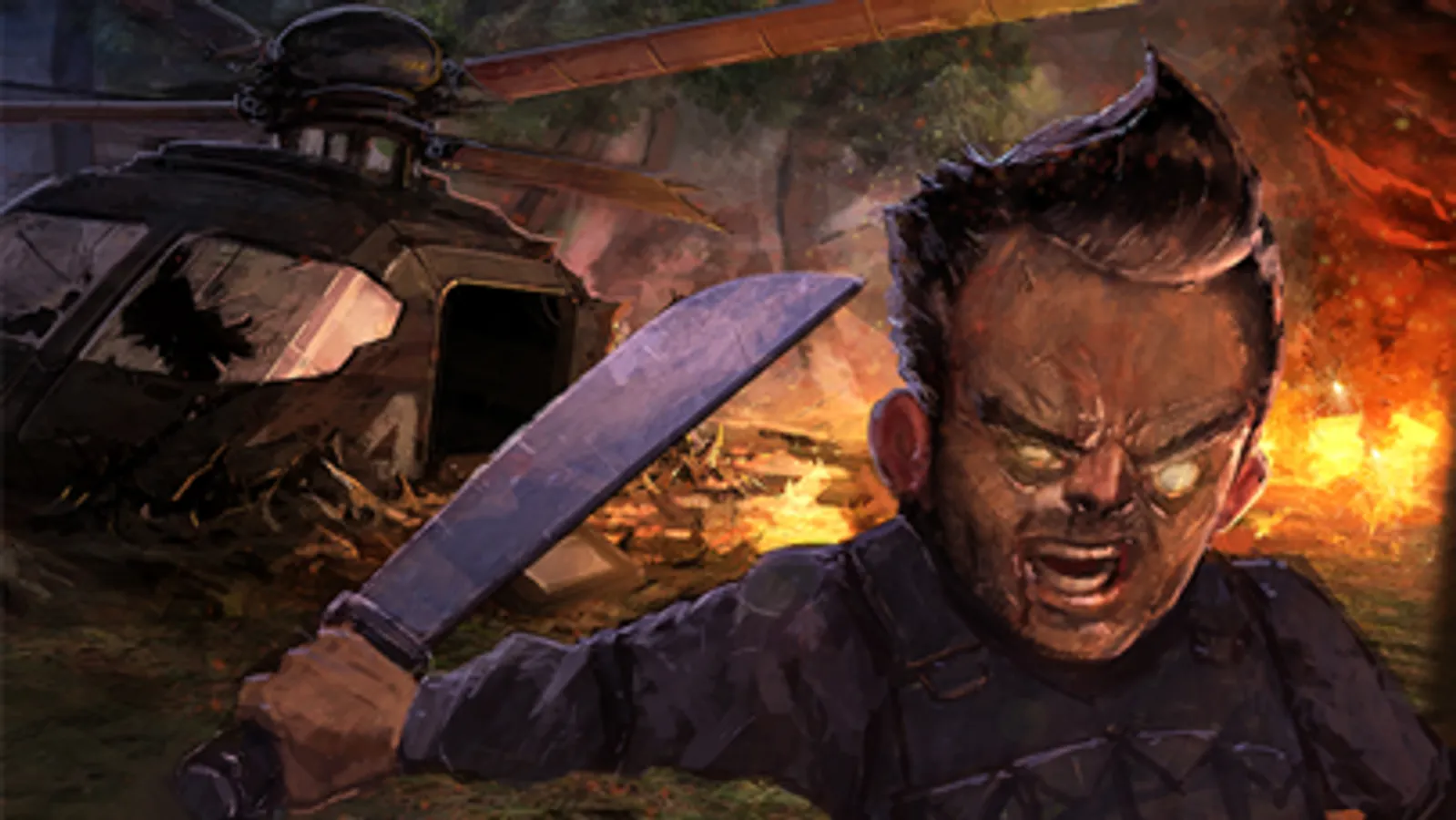 Your chopper has gone down on a surveillance mission. You smell a stench in the air and see crowds in the distance closing in. Your grip your machete, preparing for the worst