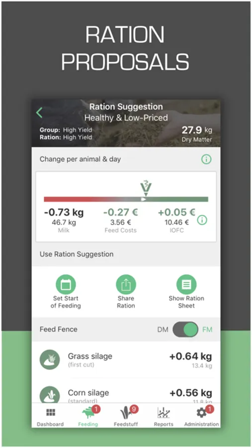 fodjan App supports you in your daily tasks around the feeding management of your dairy herd: