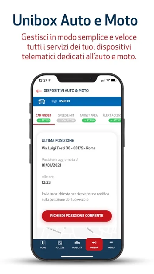 - gestire le tue Unibox-dispositivi telematici dedicati alla protezione dei tuoi veicoli, la tua Casa, la tua attività commerciale, i tuoi animali domestici.