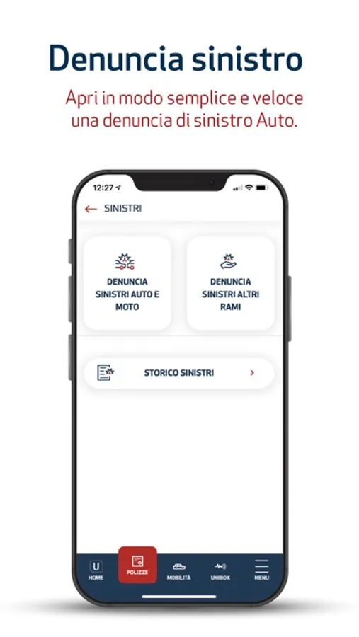 - disporre di tutte le informazioni per denunciare un sinistro e i numeri utili da contattare - avviare la Denuncia di un Sinistro auto o moto direttamente dal luogo dell’incidente, con la possibilità di scattare foto dei tuoi danni e velocizzare la liquidazione;