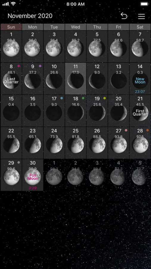 It is a simple moon phase calendar.