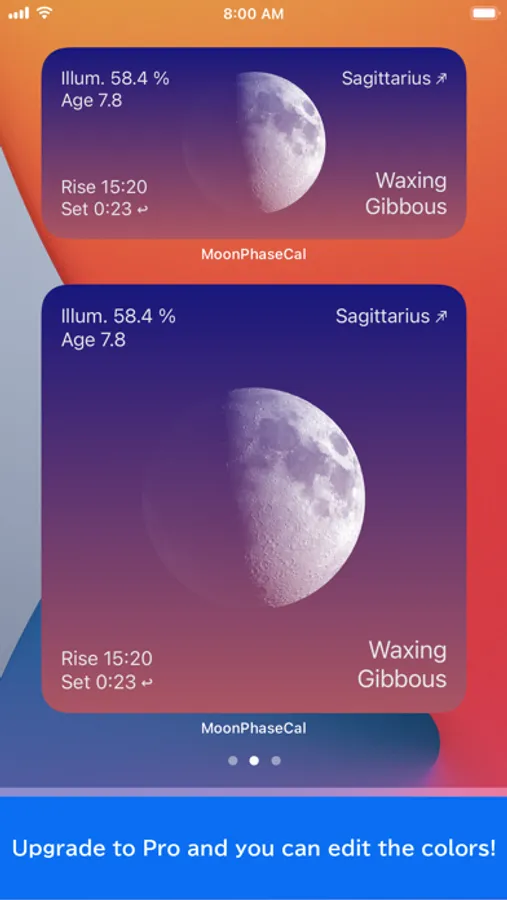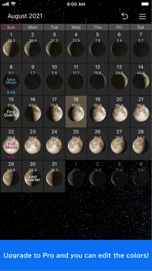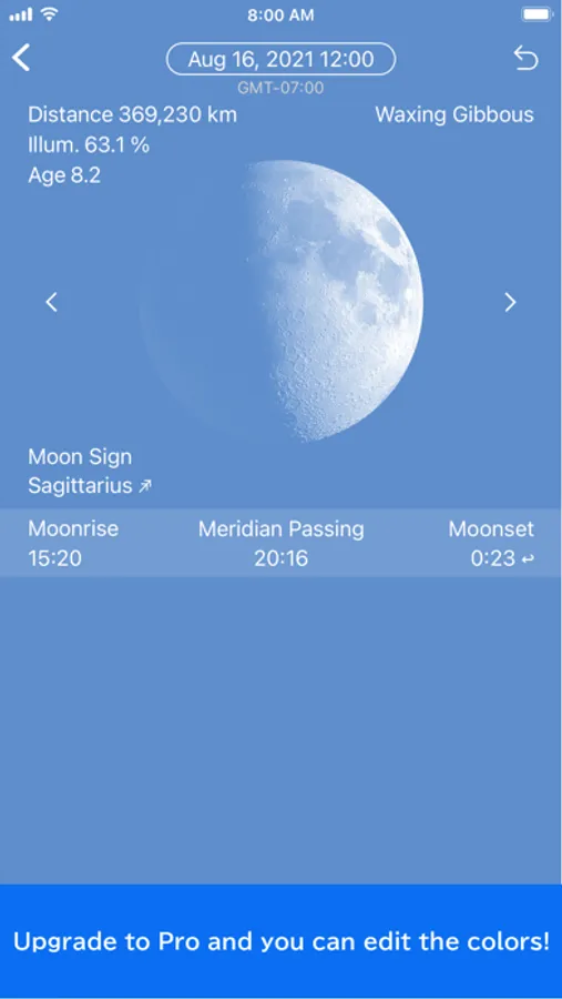 The data to display is the moon phase, moon age, distance, percent illuminated, moon sign , constellation, Mercury retrograde, moonrise and monnset etc.