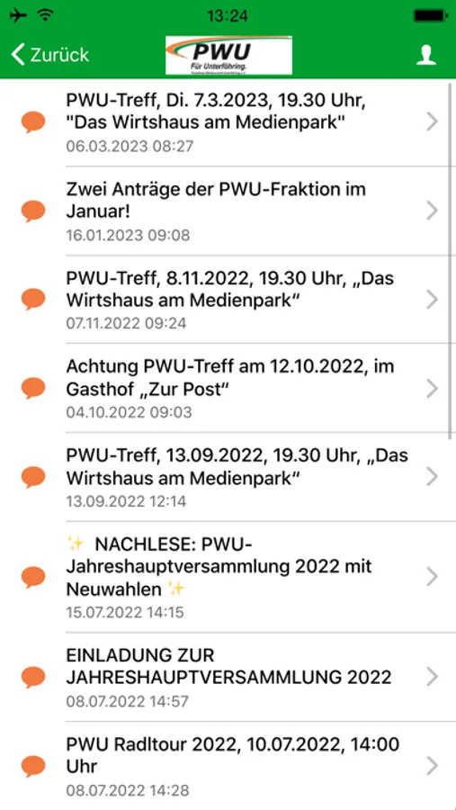 Hinweis: Um Sie umgehend über wichtige Dinge, die in Unterföhring passieren ohne Umschweife informieren zu können, bieten wir auch sog. Push-Nachrichten an, die Sie über die PWU-App abonnieren können.