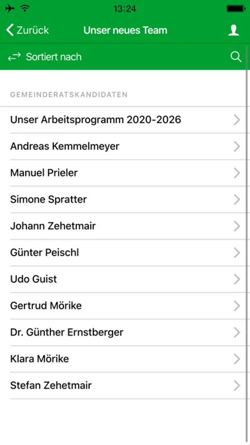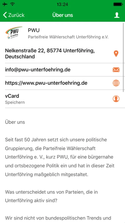 - wenn Sie auf die Verknüpfung GR & Vorstand tippen, erhalten Sie Details zu den Gemeinderätinnen, -räten und dem Vorstand der PWU,