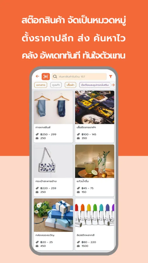 • บันทึกสินค้าพร้อมสต๊อก ต้นทุน และ ตัวเลือกคุณลักษณะเช่น สี ขนาด