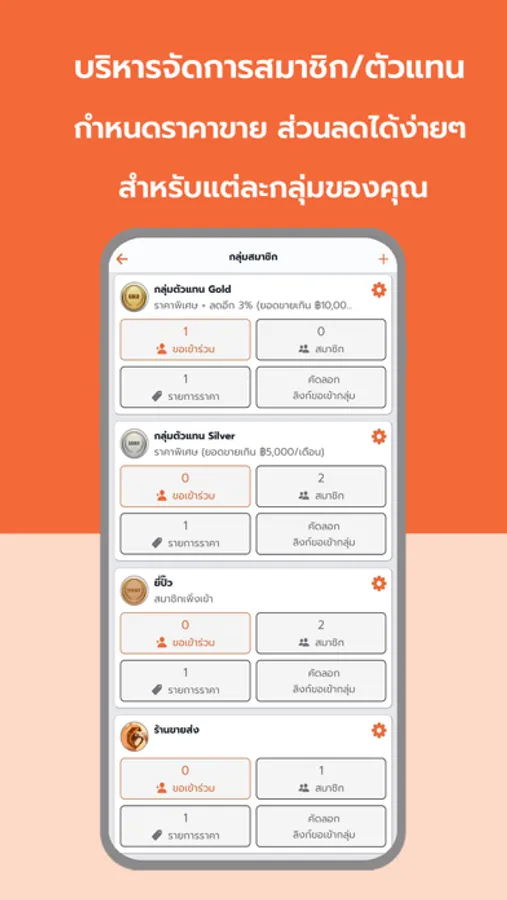 • คุณสามารถแบ่งกลุ่มตัวแทนได้ เช่น กลุ่มตัวแทนธรรมดา กลุ่มตัวแทนVIP พร้อมกำหนดราคา ส่วนลด และการมองเห็นสินค้าได้ต่างกัน