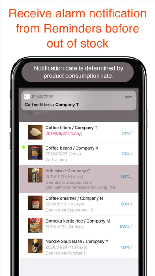 "Time to Buy" will notify you of the date determined on the basis of product information / stock information registered in this app by notification feature of Reminders.