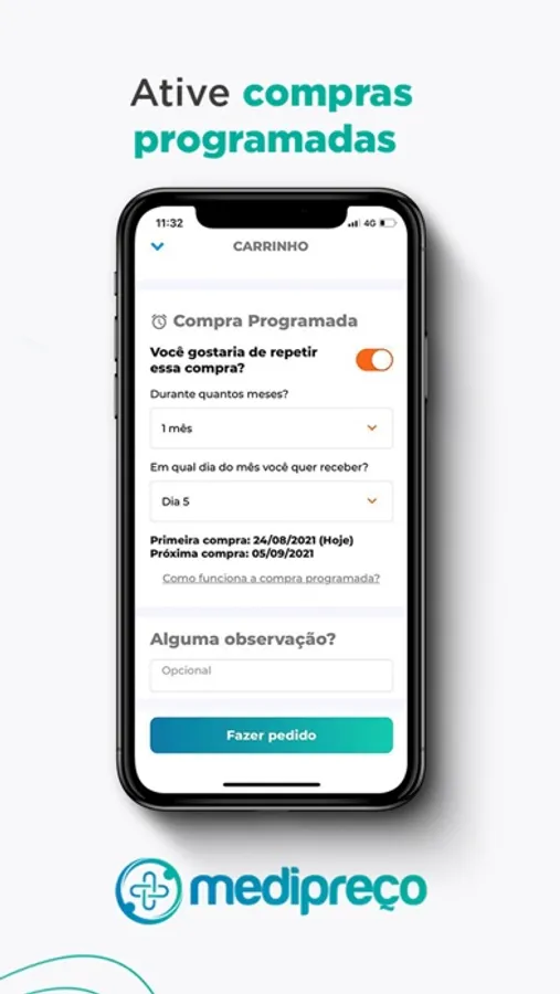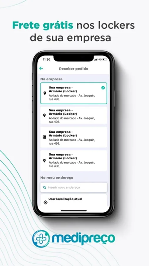 Com o app da Medipreço você pode realizar suas compras de farmácia com praticidade e economia. Pode escolher entrega grátis no armário inteligente de sua empresa ou entrega com frete em qualquer endereço que desejar. A embalagem da compra mantém o sigilo dos produtos selecionados e você retira sua compra no locker no momento em que preferir.