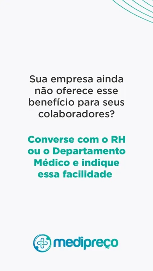 Caso sua empresa ainda não possua esse benefício para seus colaboradores, converse com o seu RH ou departamento médico e indique a Medipreço!