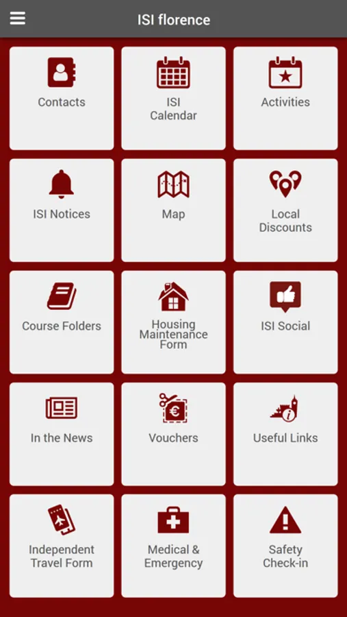 As you travel and experience life studying abroad in Italy, the International Studies Institute wants to make sure that nothing gets left behind. The ISI App allows you to keep in touch with your professors and ISI staff, respond to safety check-in notifications, access course information, get around Italy, find local student venues, and more!