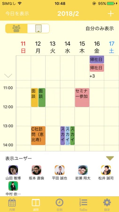 個人のスケジュールはもちろん、事業部ごとにカレンダーを作成できるのでスケジュールの共有が楽に行えます。