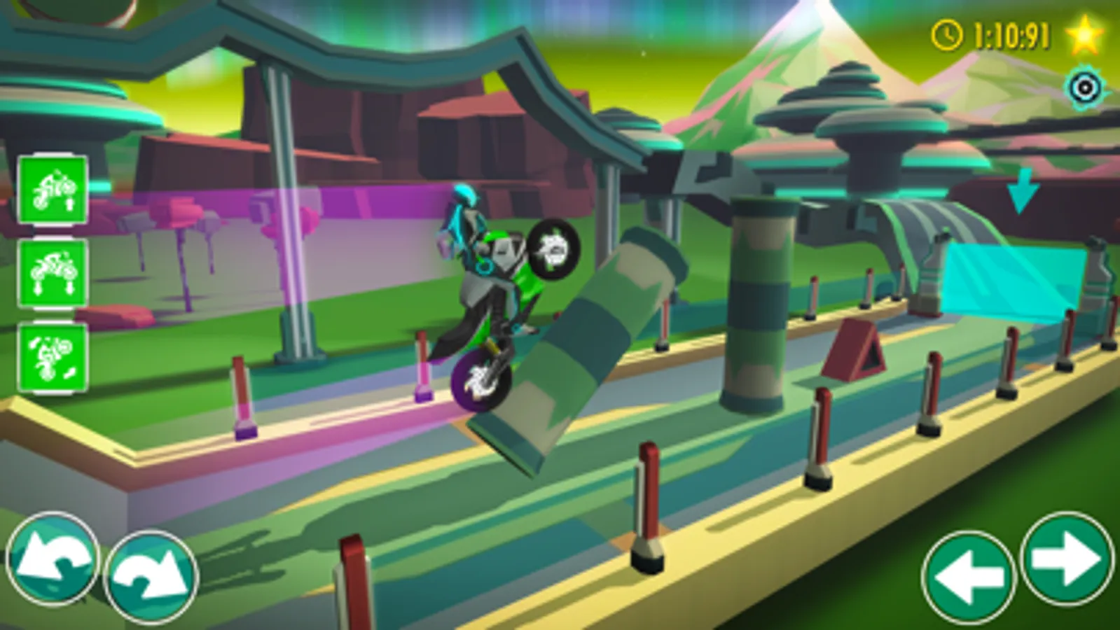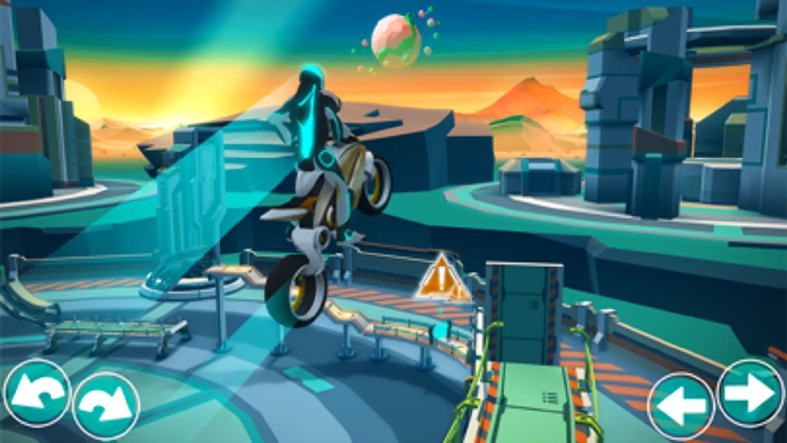 Start the engine and get on your ride! Travel through space and tackle racing challenges on a variety of planets on the way to becoming the master rider.