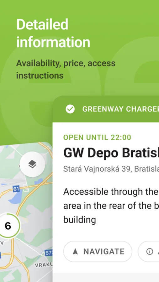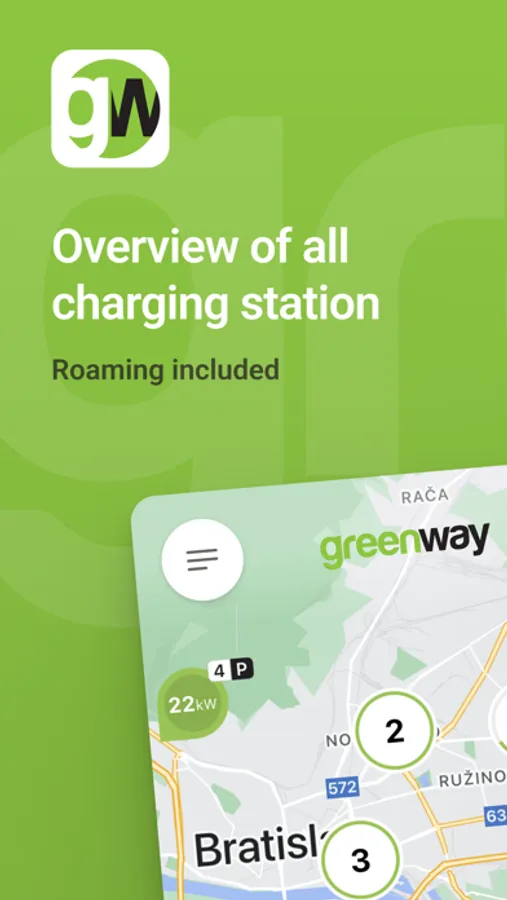 • Easily search for and find charging stations on the map – GreenWay chargers, 3rd party chargers and roaming partner chargers - all in the palm of your hand