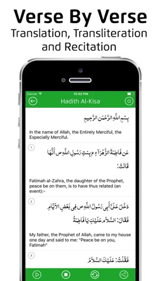 حَدِيثُ اَلكِسَاء Prophet Muhammad peace be upon him said. whenever and wherever an assembly of our followers and friends mention this event Allah will bestow on them His Blessings and Mercy angles will encircle them asking Allah the remission of their sins until the assembly disperse . Recitation of Hadise Kissa gives fulfilment of all wishes of world and (Akherat) Eternal World (here after).Hadees e kisa has been completely translated into English with Transliteration. With Audio playback each Arabic text and English text will easily appear. And also English and Tranliteration text is given for every Hades e kisa Arabic text.