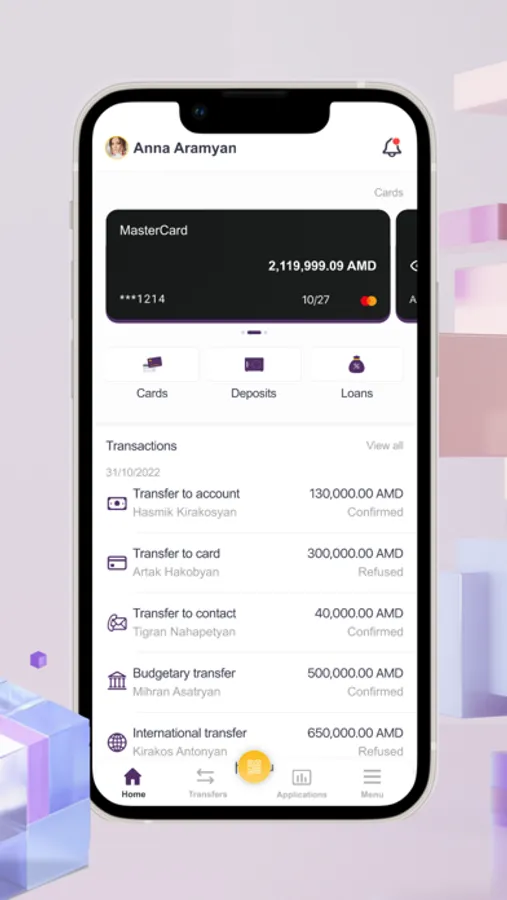 Byblos Bank Armenia’s Mobile Banking application is an efficient and secure banking tool to manage your finances on the go. With the application you will have instant access to your accounts, loans, deposits and cards as well as will make payments and transfers anytime and anywhere.