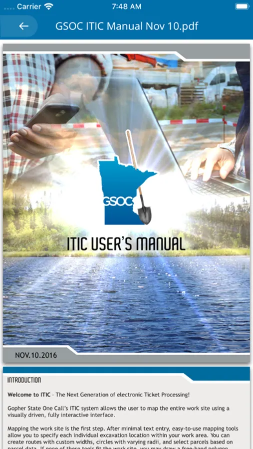 Excavators, homeowners, and facility operators can use the Gopher State One Call (GSOC) app to easily and quickly manage locate requests. Anyone planning to excavate in Minnesota can use the app to initiate, manage and monitor a locate request prior to excavation. Facility operators can use the ticket management feature to provide a positive response to excavators.