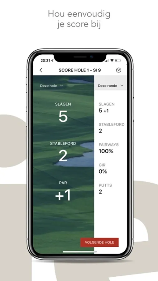 iBirdies geeft op iedere hole aan hoeveel slagen je krijgt. Je legt eenvoudig je score vast en een qualifying kaart wordt direct en automatisch ingevoerd.
