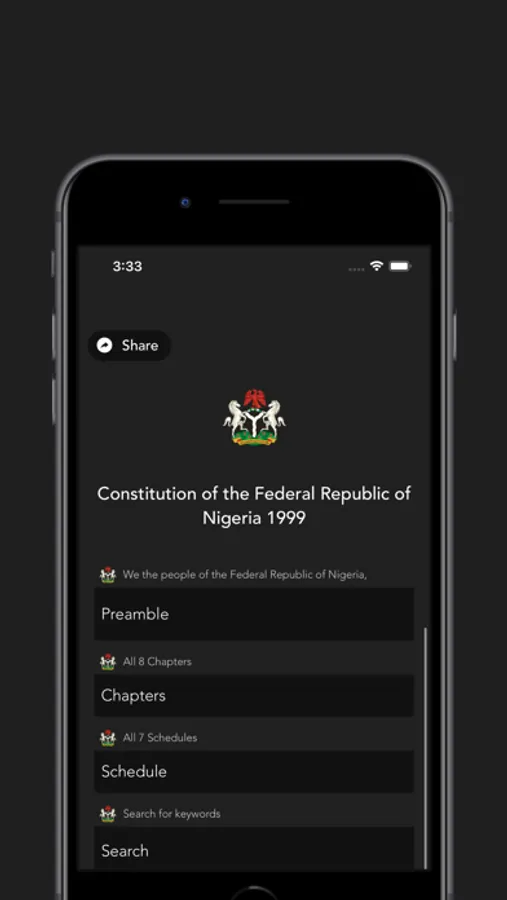 A highly accessible, easy to use app version of the Constitution of Nigeria the supreme law of the Federal Republic of Nigeria with it's 1st, 2nd and 3rd Amendments. Nigeria has had a series of constitutions.