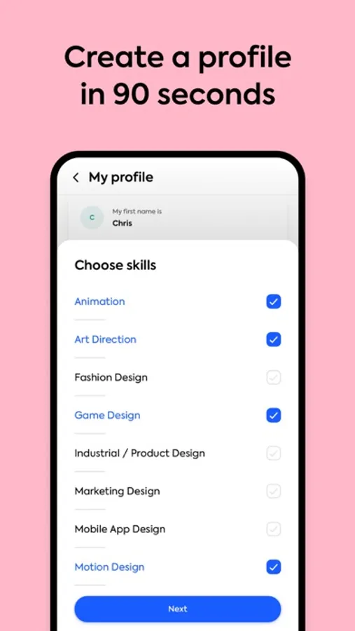 1. Create a free profile by listing your skills and expectations. CV is not required.