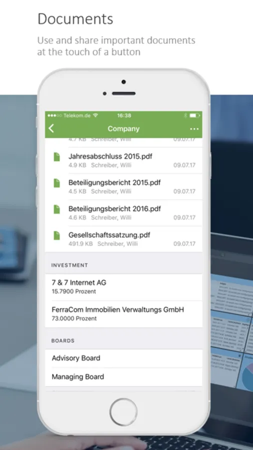 Transfer corporate information, boards, mandates and according documents from your otris corporate investment portfolio management solution to a mobile device. The advantage: The selected corporate portfolios are available in any place, even when you are offline.