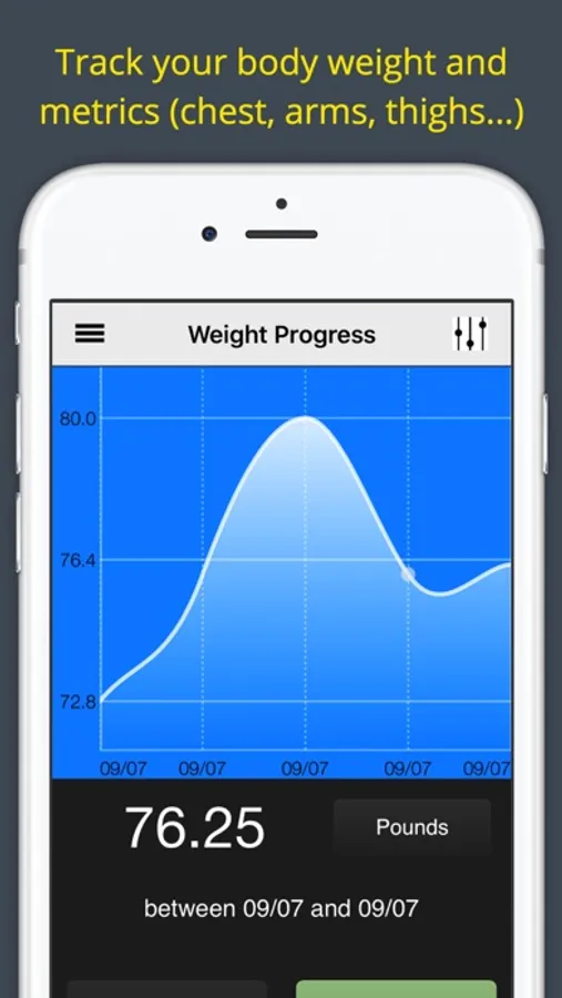 - Track your body weight and metrics (chest, arms, thighs, etc)