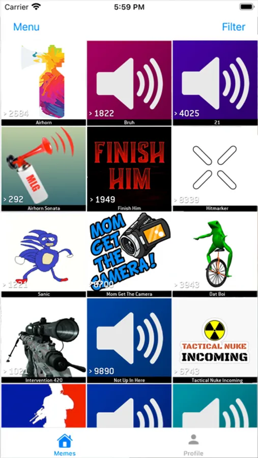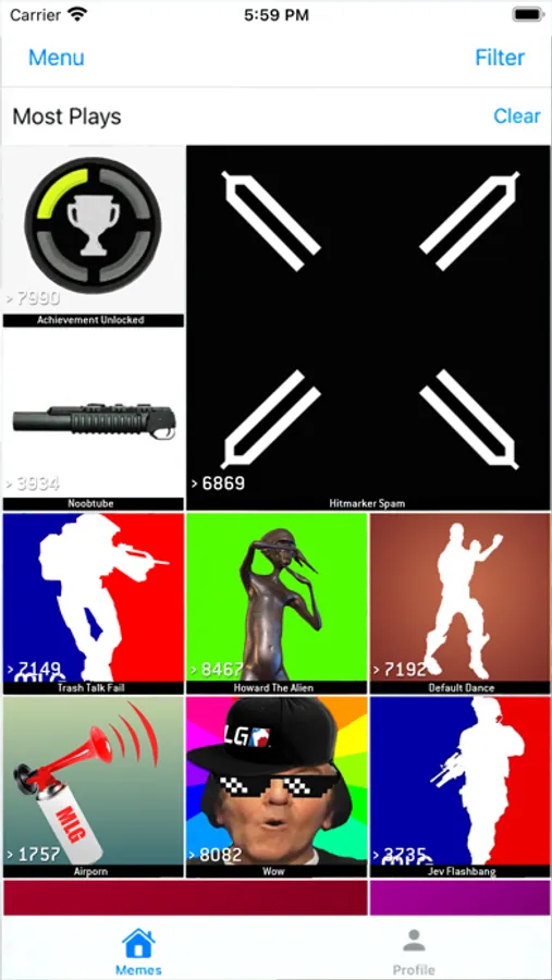 -Filter results based on date and score of memes, from most plays to the day, week, month, year, or all-time.
