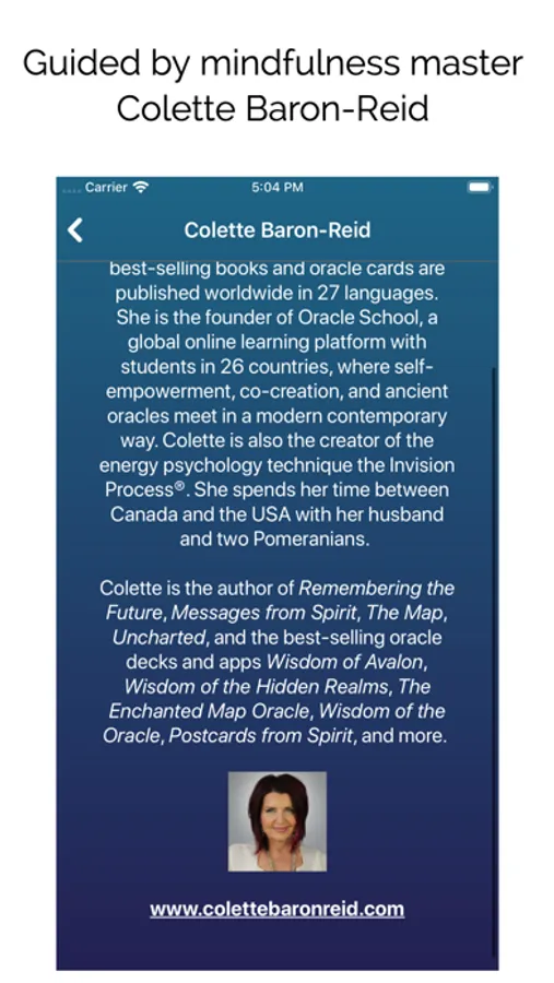Welcome to Mindful Living Meditations, created by Colette Baron-Reid, spiritual intuitive, mindfulness master, educator and oracle expert. Colette is a best-selling author and founder of Oracle School, online courses available globally for the modern mystic. Colette Baron-Reid is also a musical recording artist on the Universal Music Label.